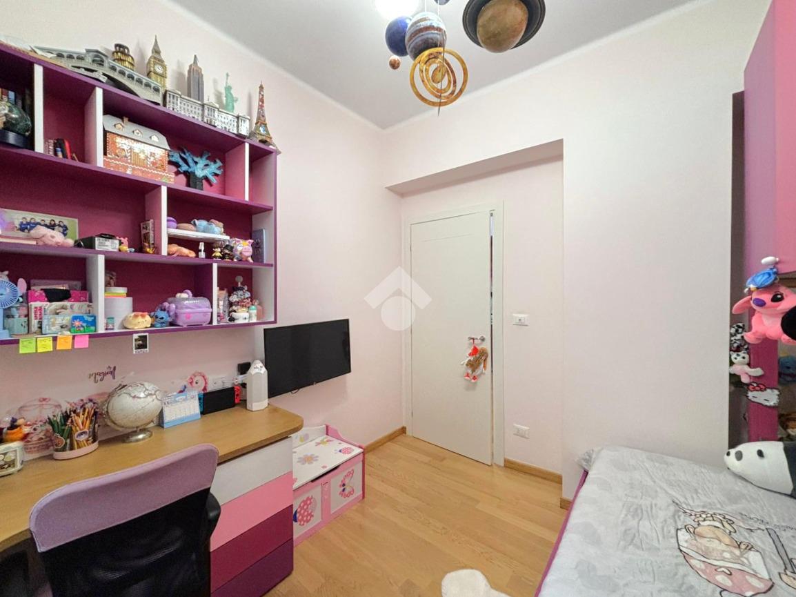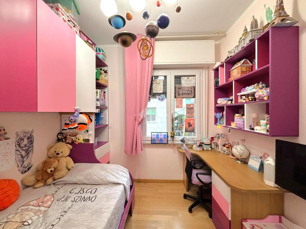 La zona notte comprende due camere da letto e un comodo studiolo, ideale come spazio smart-working o piccola zona hobby. Il bagno, finestrato, e dotato di vasca utilizzabile anche come doccia.