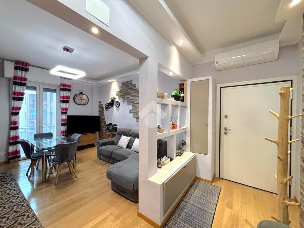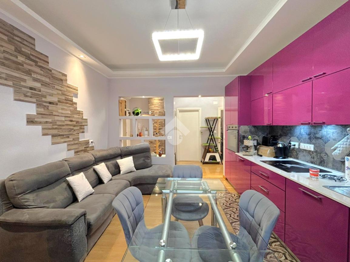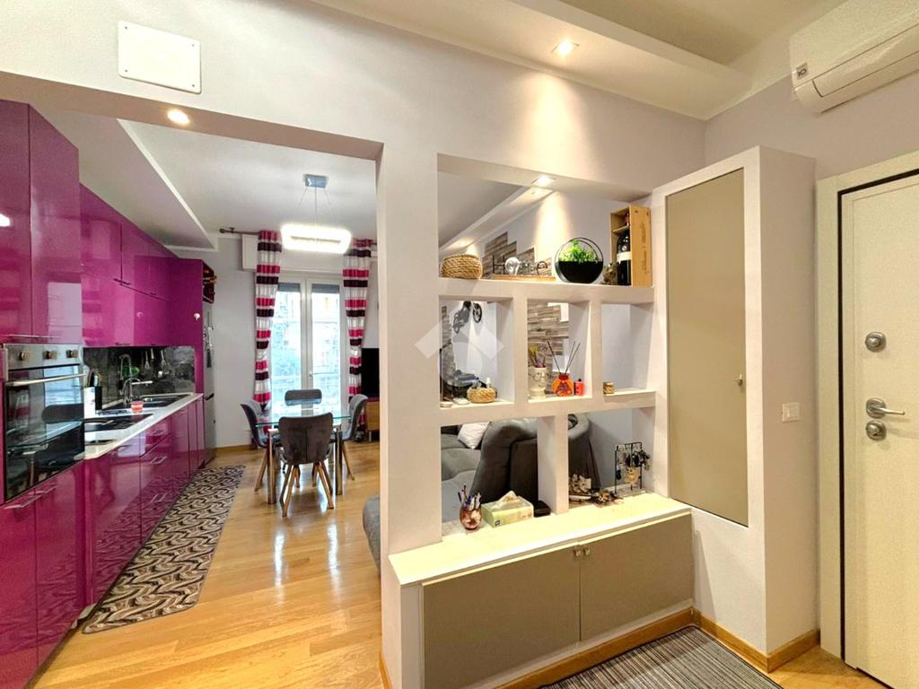 Proponiamo in vendita un appartamento completamente ristrutturato, caratterizzato da ambienti moderni e ben ottimizzati. L’ingresso conduce a un ampio openspace, dove la zona giorno è valorizzata da mobili su misura, personalizzabili anche nel colore, e da una piacevole luminosità. Da qui si accede al balcone, condiviso con una delle camere, grazie ai nuovi infissi che garantiscono un ottimo isolamento.