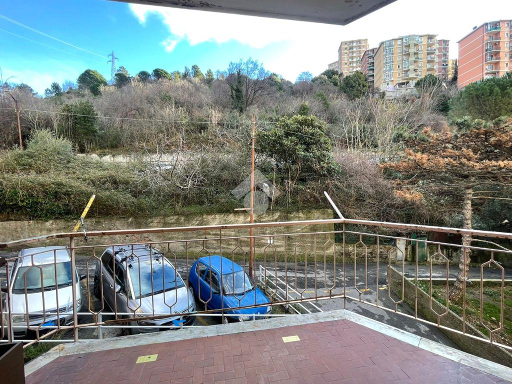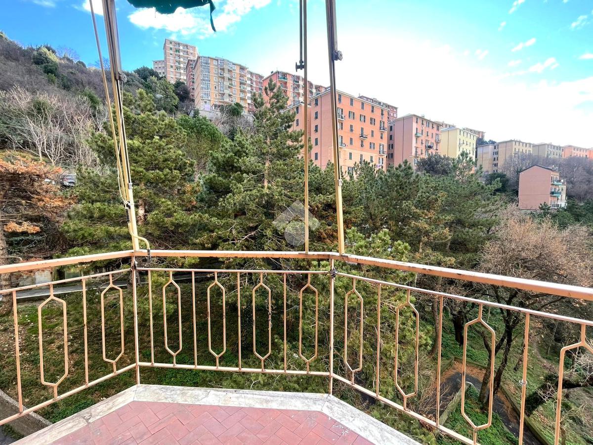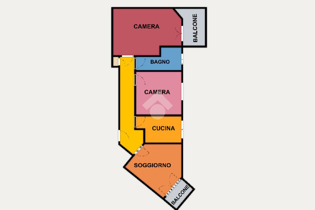 L’immobile è composto da tre camere, di cui una facilmente utilizzabile come salotto adiacente alla cucina,dispensa, bagno e due balconi.